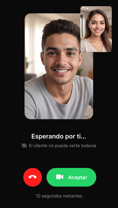 Los clientes adicionales esperarán en tu sala de espera virtual durante un chat de video en curso.